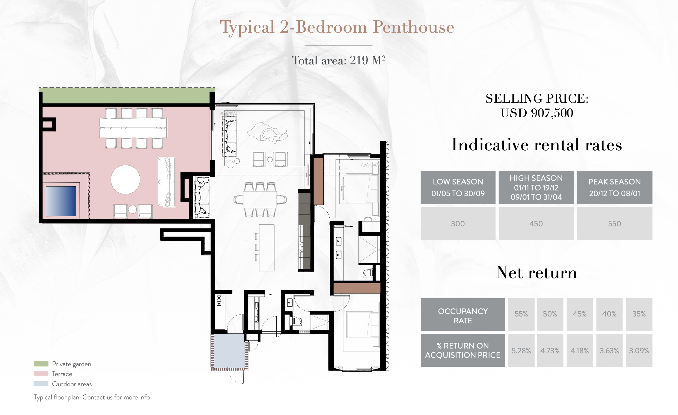 These stunning and lavishly decorated penthouses await your visit, where the finest in luxury meets a high quality of living! These penthouses, which come in two and three-bedroom en-suite layouts, are the best in their price group in terms of accommodation. The nicest feature of the bedrooms is the view from the gorgeous window that extends the length of the room. For the serious foodies, you may prepare beautiful meals in your practical kitchen, which comes with marble worktops as part of the luxury décor package, or hire a private chef. The penthouses do, in fact, provide the ideal combination of interior and outdoor life. The home's earthy color scheme complements the furniture. The Essence is a timeless and elegant residential property located only steps from Trou aux Biches' beautiful beach, and its design is inspired by the Casuarina Resort & Spa's architectural identity. The premium property has been built to provide a one-of-a-kind living experience, with immaculate attention to detail and unsurpassed refinement. The gated entrance leads to a tropical wonderland with villas, apartments, and penthouses with spacious volumes and spaces, all while you can relax on your own private beach with all of the hotel's amenities at your fingertips. The architect has carefully selected finishes, including a blend of wood and volcanic rock, to give the facade an original character. Every element has been meticulously considered, including an elegant color palette, to promote a world of serenity. This refuge of tranquility mixes into an unspoiled, green environment, with a beach lifestyle thrown in to complete the island experience. Situated on the north coast of Mauritius, Trou aux Biches is often cited as one of the most beautiful beaches in the world. It is known for being one of the best for long, invigorating walks, swimming in crystal-clear waters, snorkeling over the beautiful seabed, and admiring exceptional sunsets. The area is a key focus for property investors. The Trou aux Biches village has retained its old-fashioned charm. The coastal road is dotted with restaurants, bars, and shops designed to indulge your desire for local produce and the typical products of Mauritius. Trou aux Biches is easy to access. It is near the motorway as well as Grand Baie La Croisette and Grand Bay Coeur de Ville shopping centres, the only 18-hole golf course in the north, medical centers and private international schools. || Agent : Normaan Peermamode | 57514669 normaanpeermamode@gmail.com ||